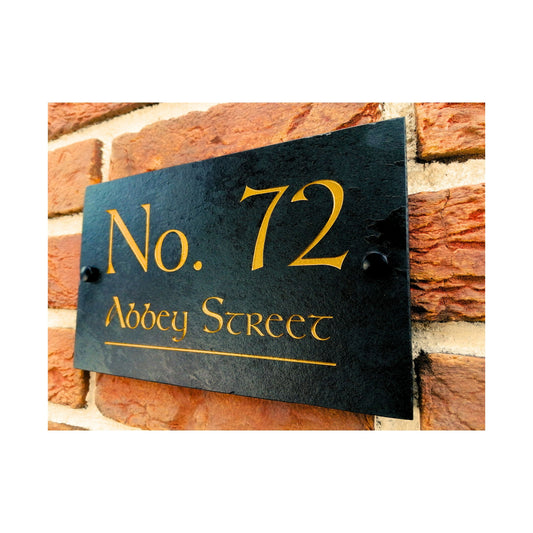 Engraved Natural Slate House Address Sign - Rustic Farmhouse Style Door Number - Wedding, Housewarming, Anniversary Gift Idea