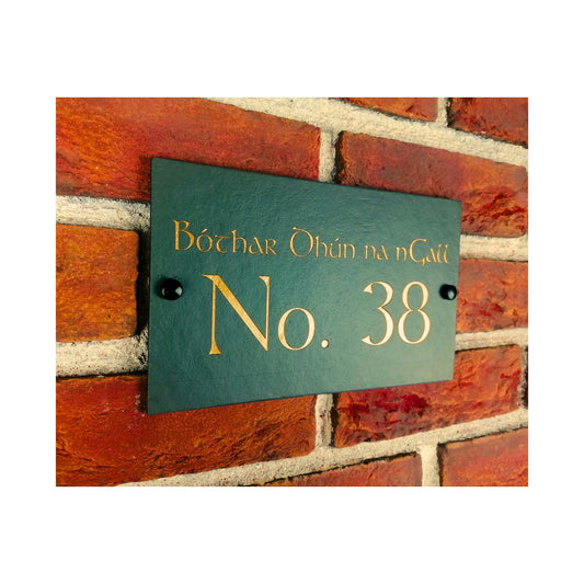Deep Engraved Rustic Handmade | Oval Natural Slate House Sign | Plaque Door Number Street Name | Farmhouse Postcode | Celtic Knot Gaelic