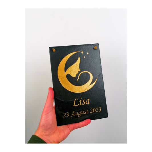 Gifts for Newborn Child Baby | Personalised Custom Art Drawing | Natural Slate Deep Engraved | Simple Line Art | Rustic Unique Bespoke Gift