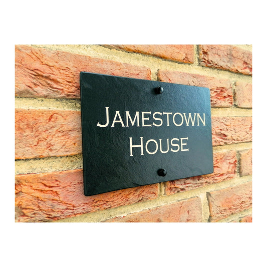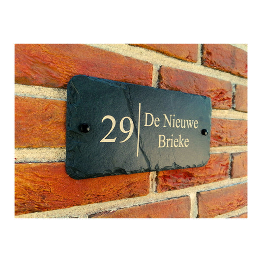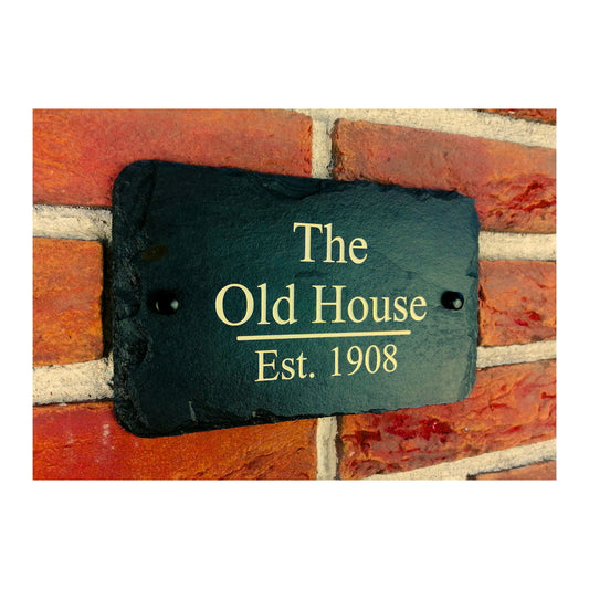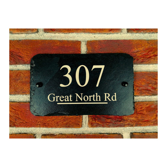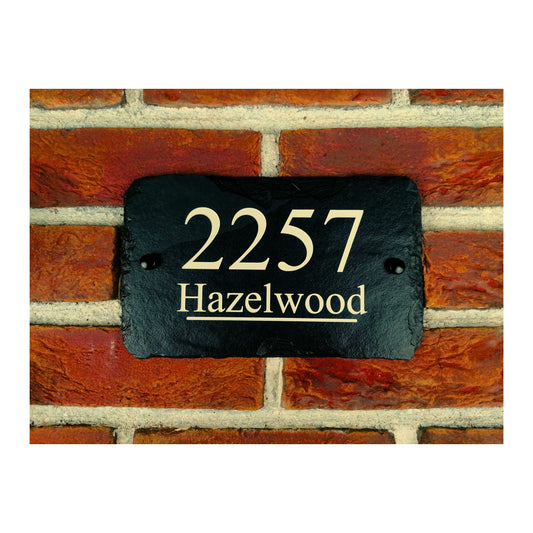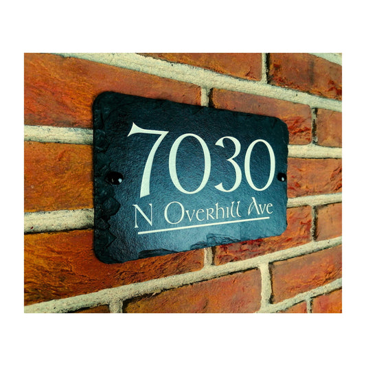 Engraved Natural Slate House Address Sign - Rustic Farmhouse Style Door Number - Wedding, Housewarming, Anniversary Gift Idea