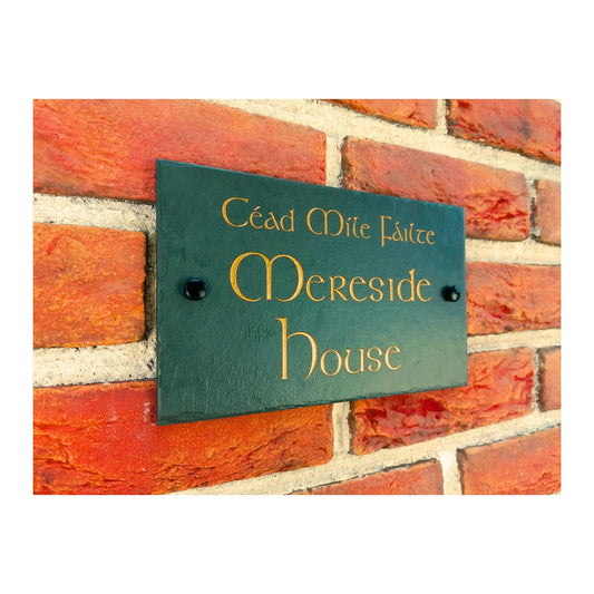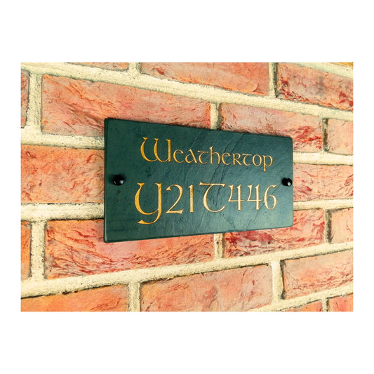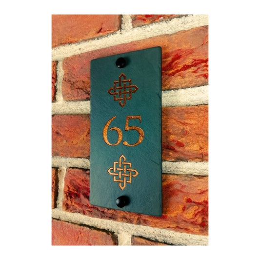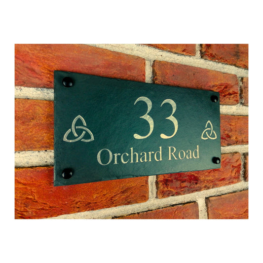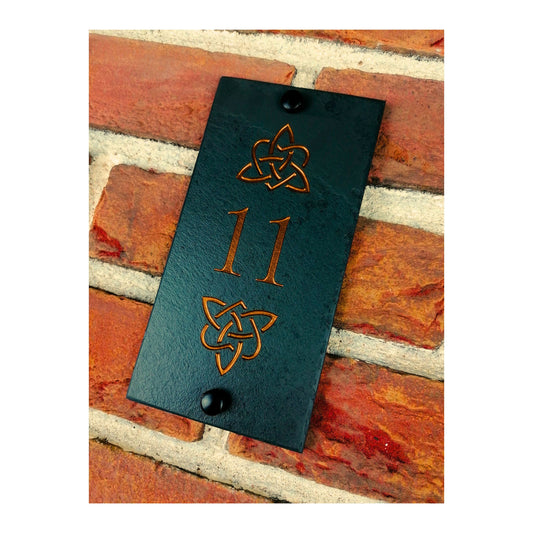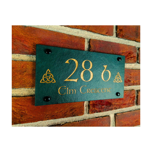 Natural Slate Home Address Sign | Irish Celtic Knot Gaelic | Handmade Deep Engraved | Rustic Custom Bespoke Personalised | Unique Home Decor