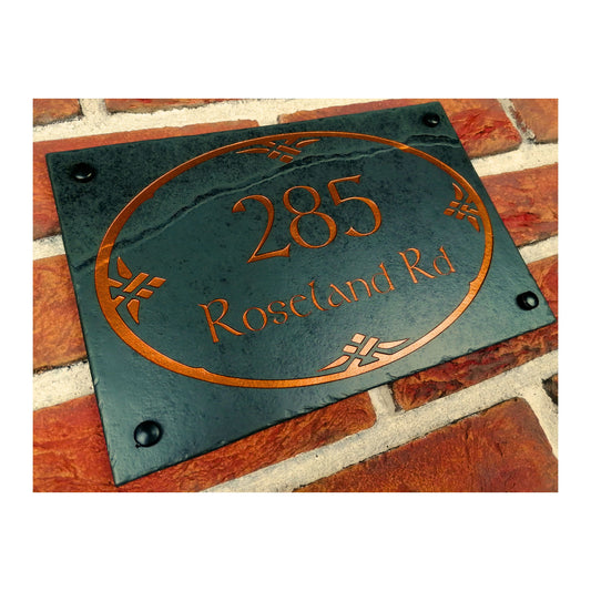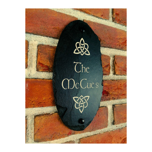 Deep Engraved Rustic Handmade | Oval Natural Slate House Sign | Plaque Door Number Street Name | Farmhouse Postcode | Celtic Knot Gaelic