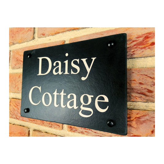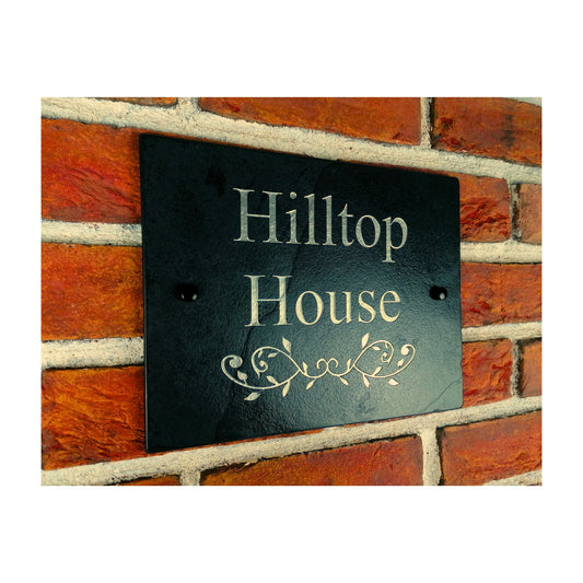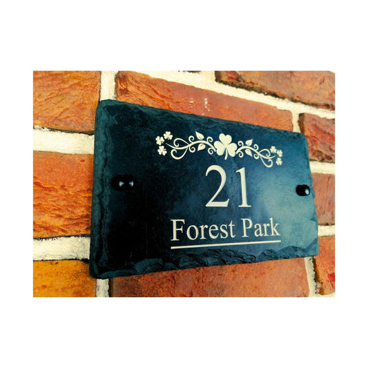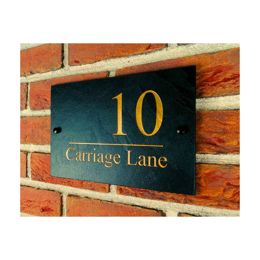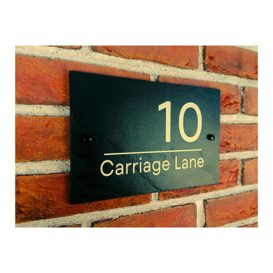 Engraved Natural Slate House Address Sign - Rustic Farmhouse Style Door Number - Wedding, Housewarming, Anniversary Gift Idea
