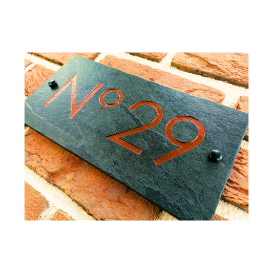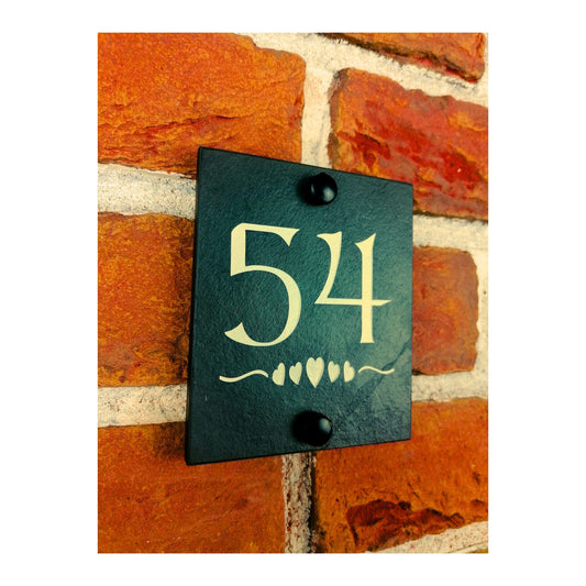 Engraved Natural Slate House Number Sign - Rustic Farmhouse Style Door Number - Wedding, Housewarming, Anniversary Gift Idea