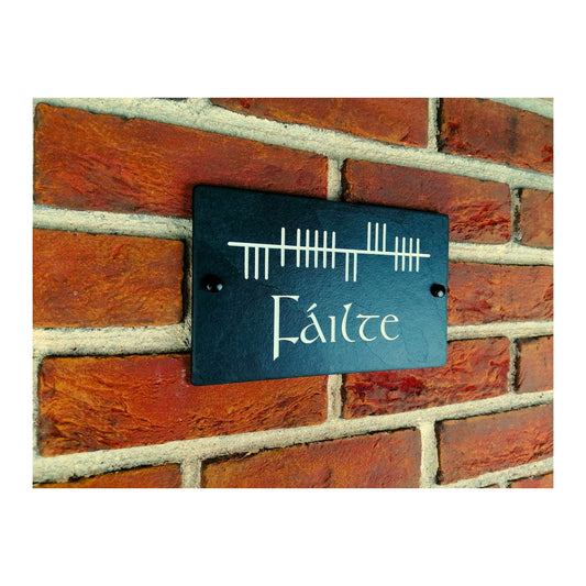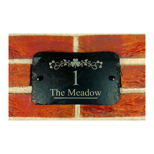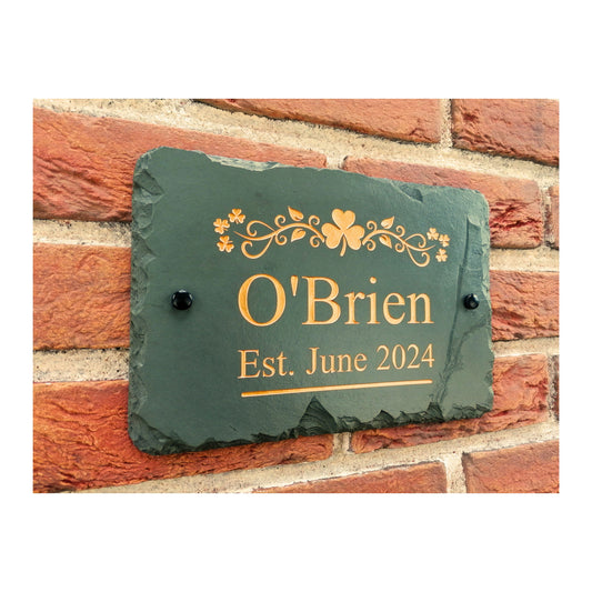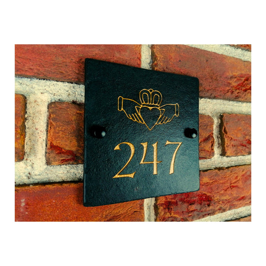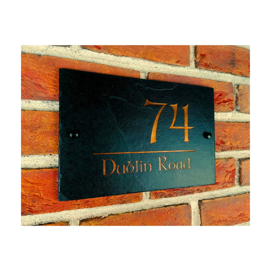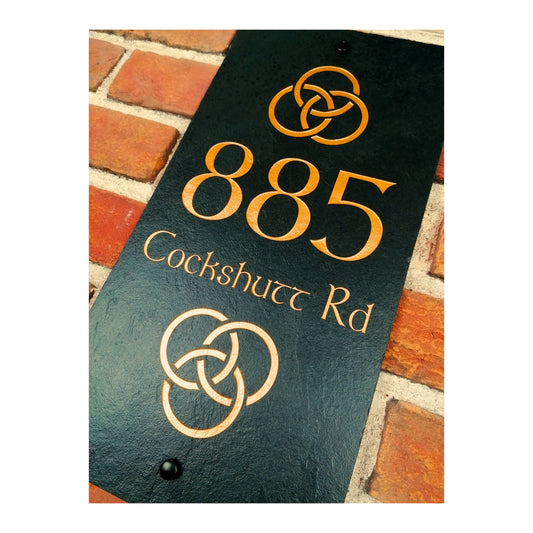 Engraved Natural Slate House Address Sign - Rustic Farmhouse Style Door Number - Wedding, Housewarming, Anniversary Gift Idea - Celtic Knots Gaelic Irish