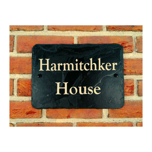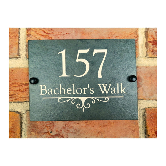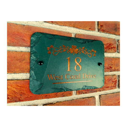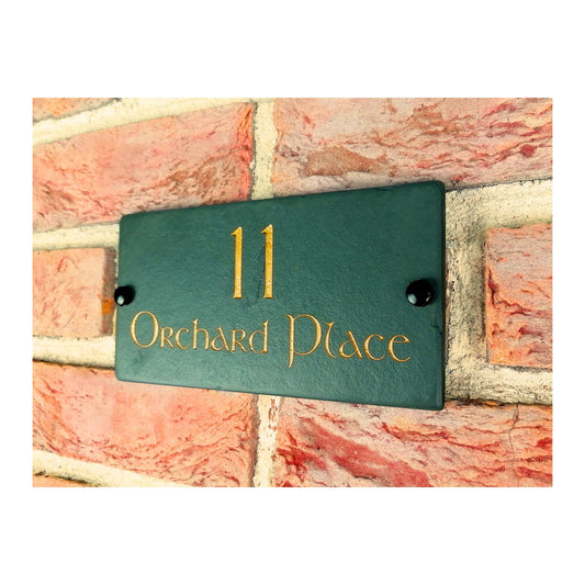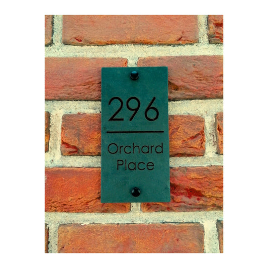 Engraved Natural Slate House Address Sign - Rustic Farmhouse Style Door Number - Wedding, Housewarming, Anniversary Gift Idea