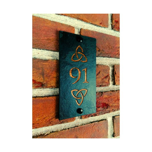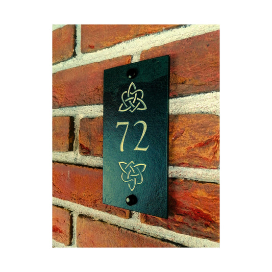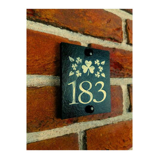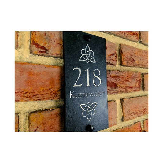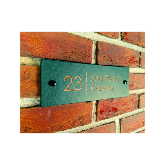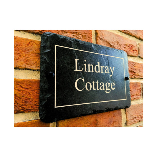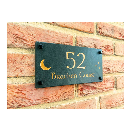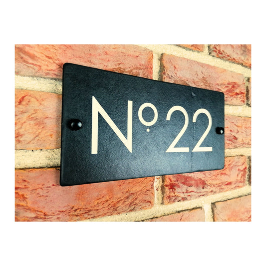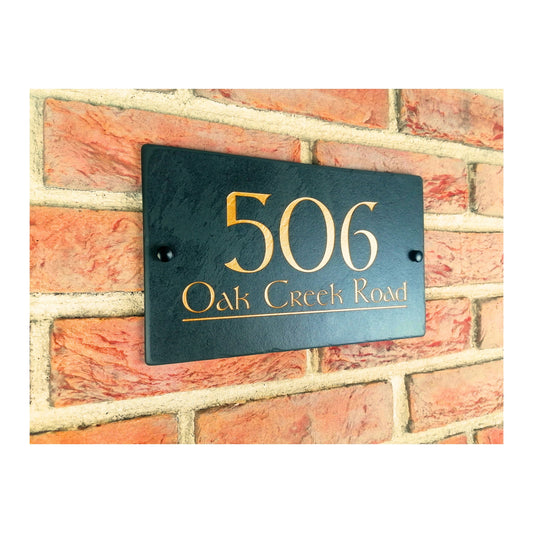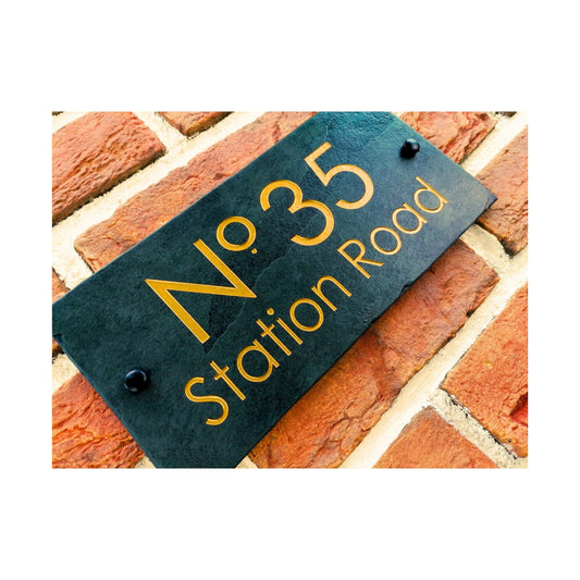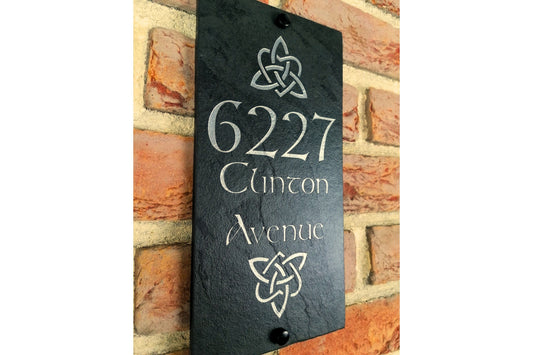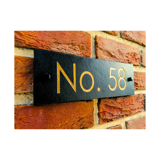 Engraved Natural Slate House Address Sign - Rustic Farmhouse Style Door Number - Wedding, Housewarming, Anniversary Gift Idea