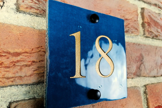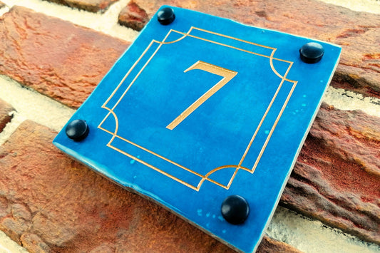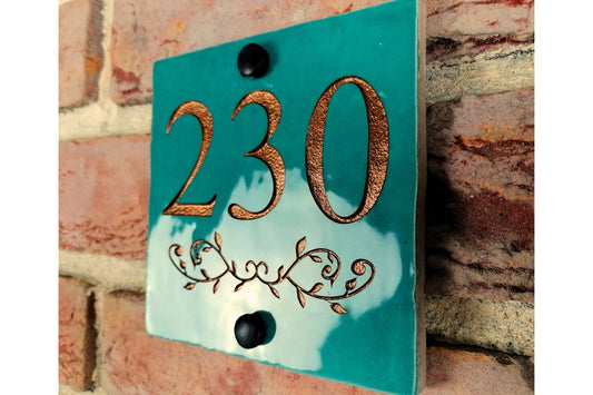 Engraved Ceramic Wall Tile Door Number Sign | Irish Handmade Rectangle Door Number House Name | Rustic Custom Personalised Postcode Mailbox Irish