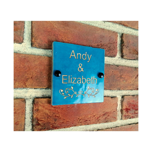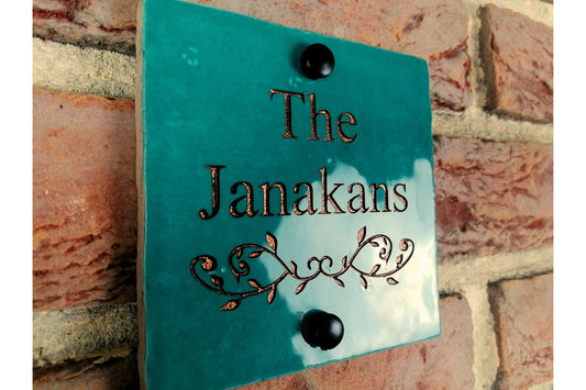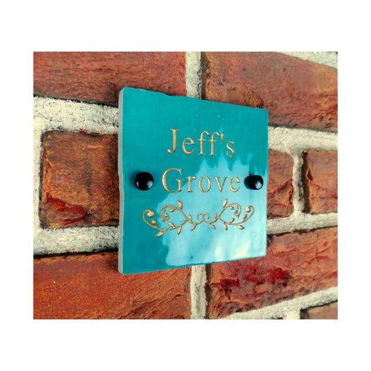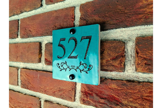 Engraved Ceramic Wall Tile Address Sign | Irish Handmade Square Door Number House Name | Rustic Custom Personalised Postcode Mailbox Irish