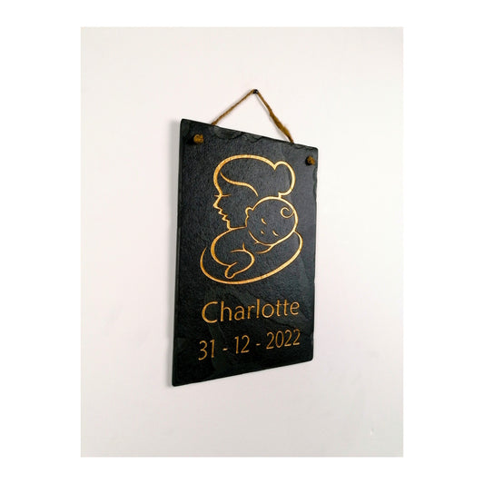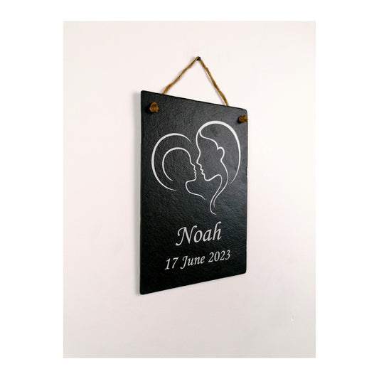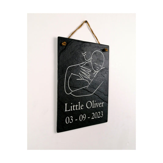 Gifts for Newborn Child Baby | Personalised Custom Art Drawing | Natural Slate Deep Engraved | Simple Line Art | Rustic Unique Bespoke Gift